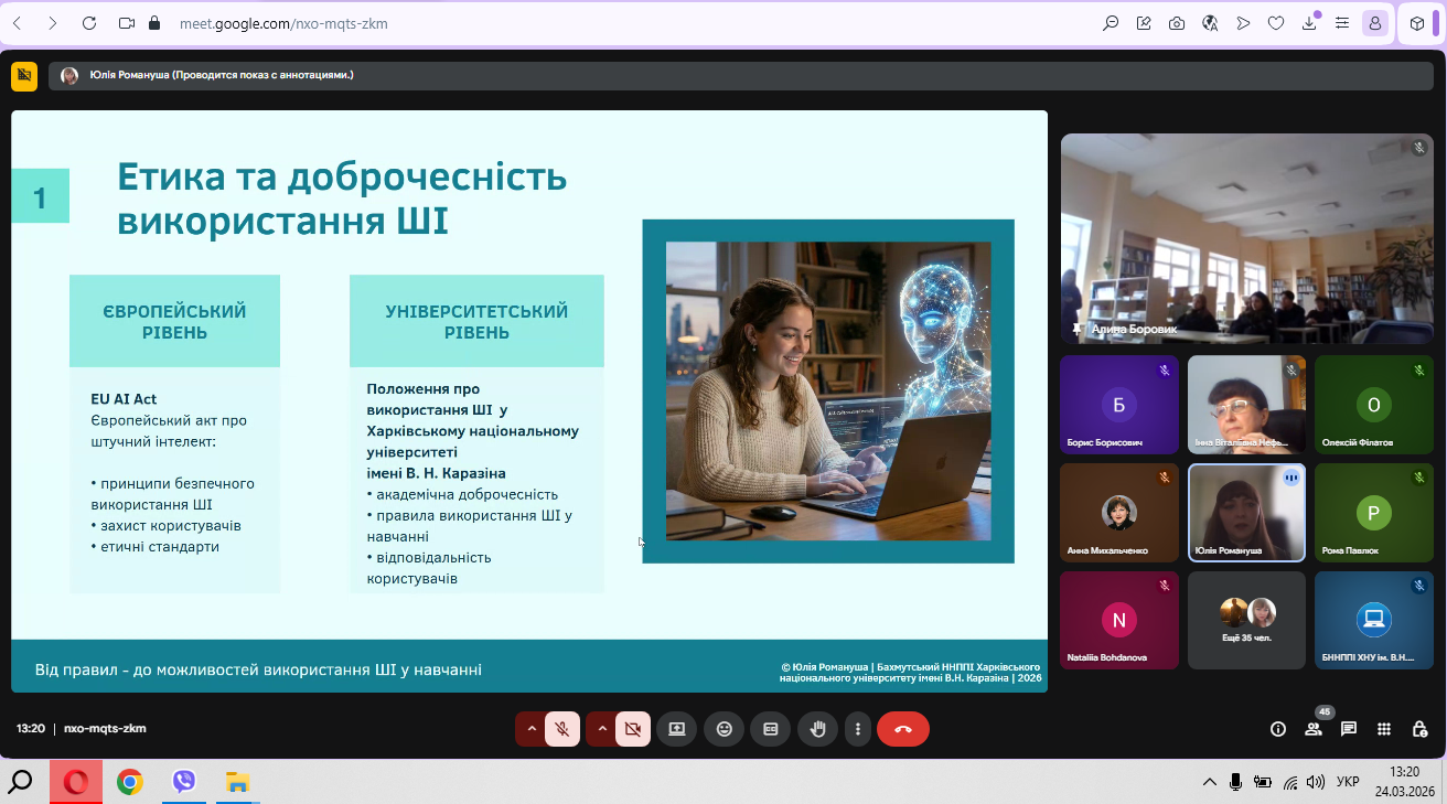 Особливу увагу було приділено формуванню усвідомленого підходу до використання штучного інтелекту як інструменту підтримки навчання. Наголошено, що ШІ не замінює мислення, а сприяє його розвитку та вдосконаленню.